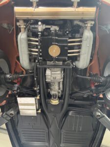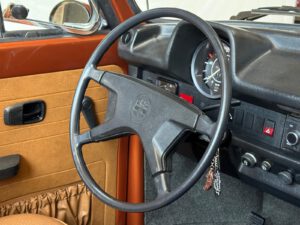 Im Mittelpunkt der Arbeiten stand eine vollständige Neulackierung, bei der besonderer Wert auf die originalgetreue Farbgebung und eine hochwertige Ausführung gelegt wurde. Auch die Innenausstattung wurde aufwändig aufgearbeitet– stilvoll, passend zum Charakter des Fahrzeugs und mit einem hohen Maß an Detailverliebtheit.